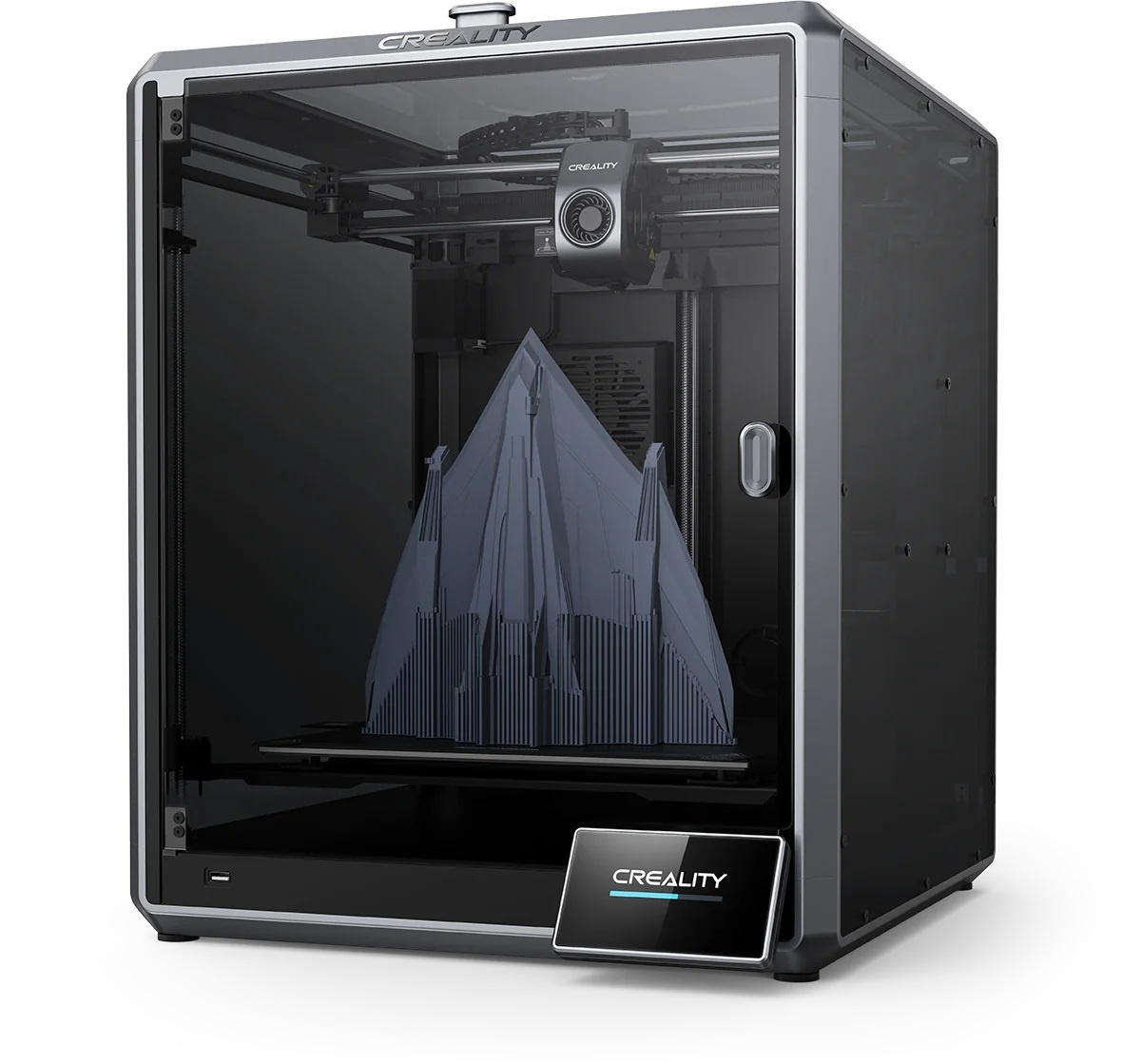 Объединение всех интеллектуальных функций K1 Max и предоставление удобного пользовательского интерфейса - это то, что Creality называет Creality OS. Цветной сенсорный дисплей с диагональю 4.3 дюйма расположен на корпусе и используется для непосредственного управления принтером, а встроенный накопитель емкостью 8 ГБ предназначен для хранения моделей и быстрой отправки их на печать.