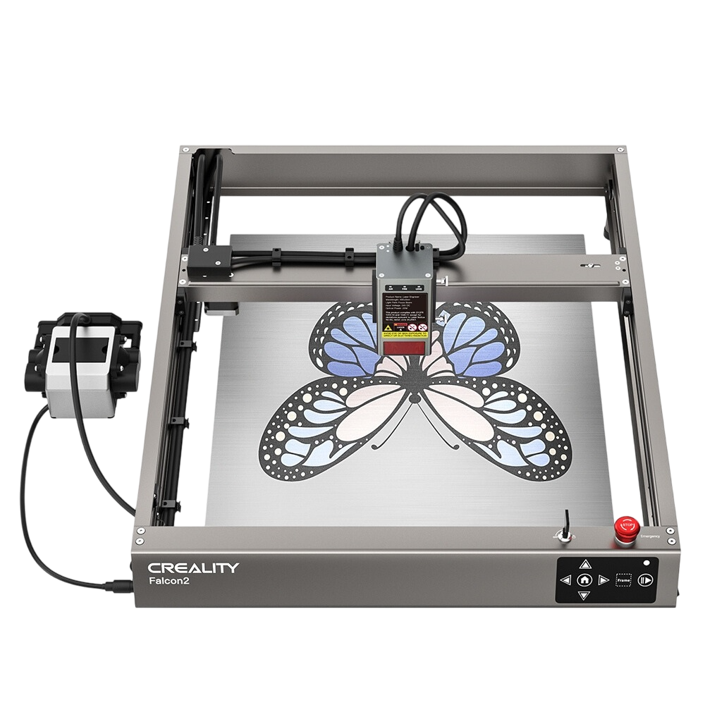 Creality CR-Laser Falcon2 22W оснащен интеллектуальной системой контроля. Индикатор подачи воздуха позволяет регулировать параметры в в зависимости от задачи - гравировки или резки. Встроенная система определения уровня загрязнения линзы сообщает пользователю, о необходимости очистки. Это предотвращает поломку линзы и напрямую влияет на точность работ. И, наконец, датчик возгорания немедленно останавливает работу устройства, в случае обнаружения пламени.
